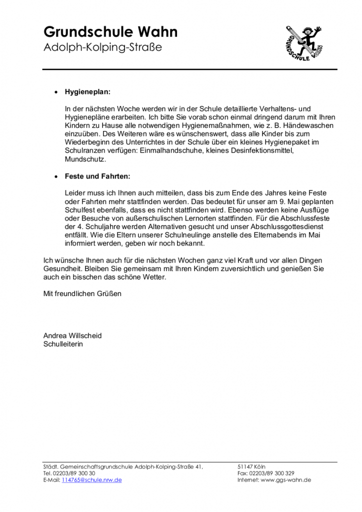 Informationen zum Unterricht nach den Osterferien