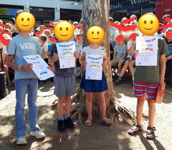 Ob an der Eisdiele, am Kuchengeschäft oder direkt vor unserer Schule – überall warteten kleine Rätsel, die mit Teamarbeit und Köpfchen gelöst wurden.